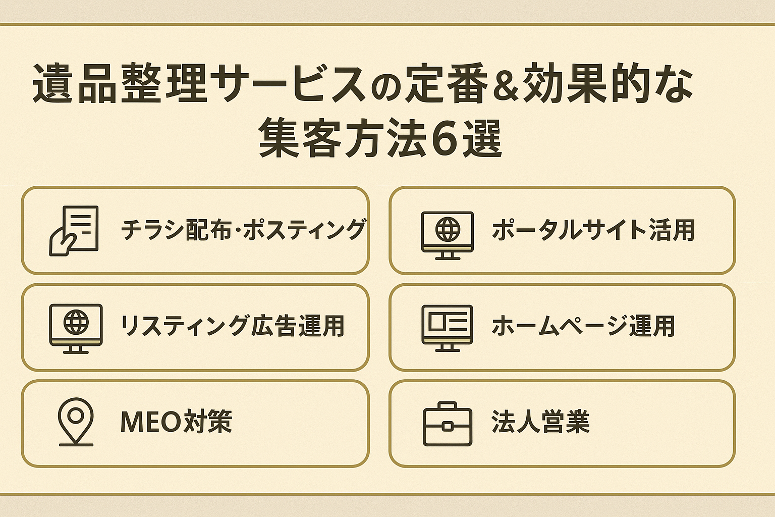 遺品整理業者が集客を成功させるには、地域性や顧客の心理に配慮した戦略的な施策が必要です。