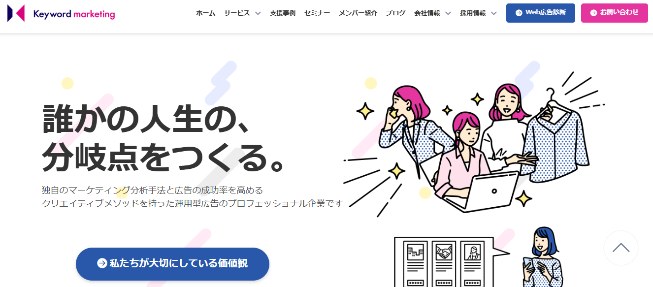 広告運用だけにとどまらず、WebサイトやLPの制作・改善、LPO(LP最適化)/CRO(CV率最適化)対策まで含めて支援できる代理店もあります。