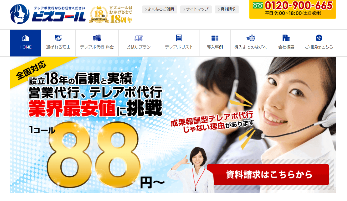 ビズコール(テレアポJAPAN)は、短期間・小ロットで利用できるテレアポ代行サービスです。単発案件や期間限定の営業活動に対応しやすく、個人でも使いやすい点が特徴です。