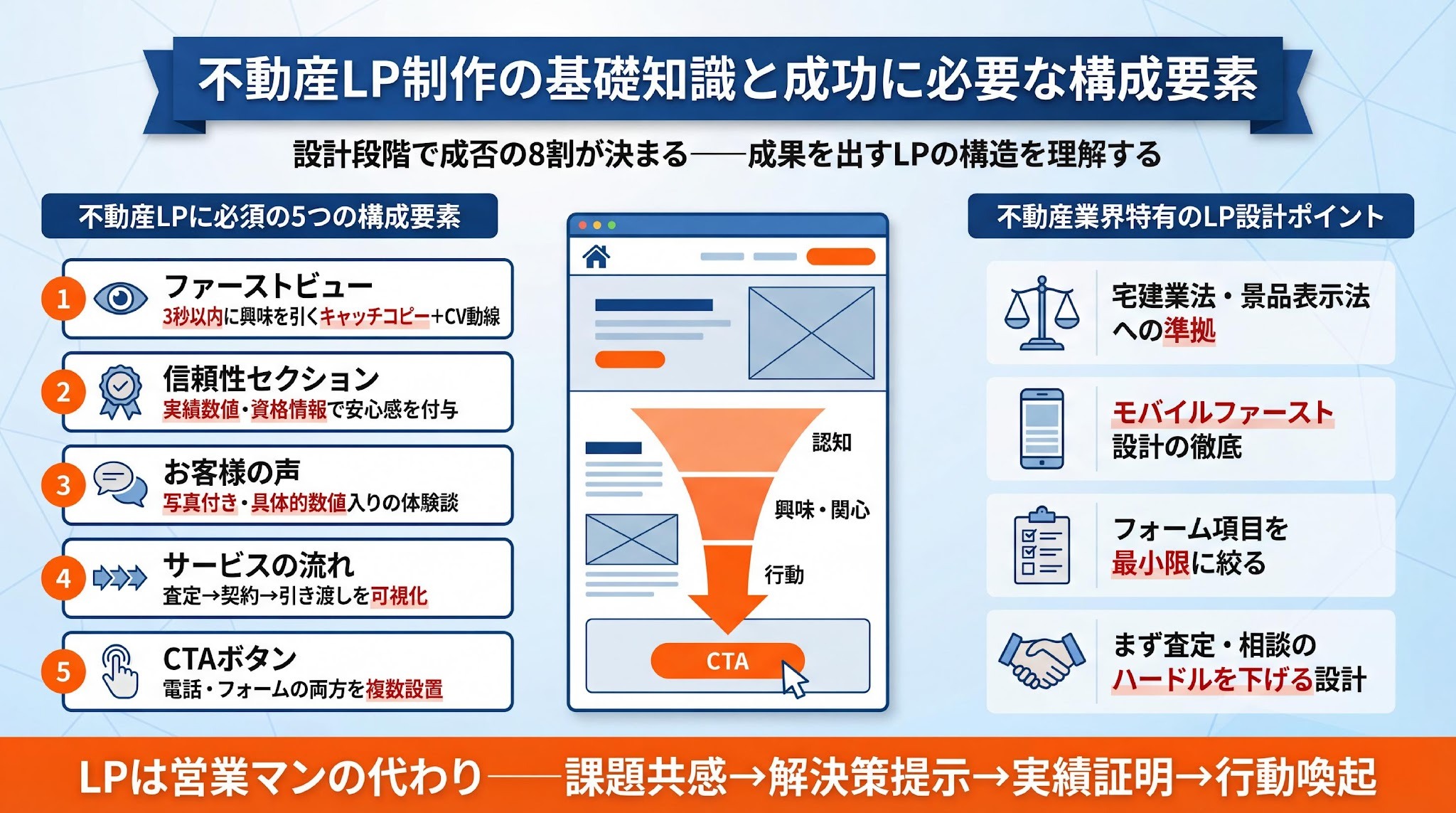 不動産LPの役割は「広告アクセスを問い合わせに変換すること」にあり、設計段階で成否の大半が決まります。