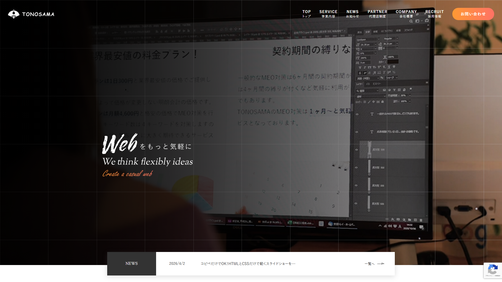 | 12 | ![]() | TONOSAMA | 全国2,000社超の実績 | 要問い合わせ | LP・SEO・広告 | 公式HP |