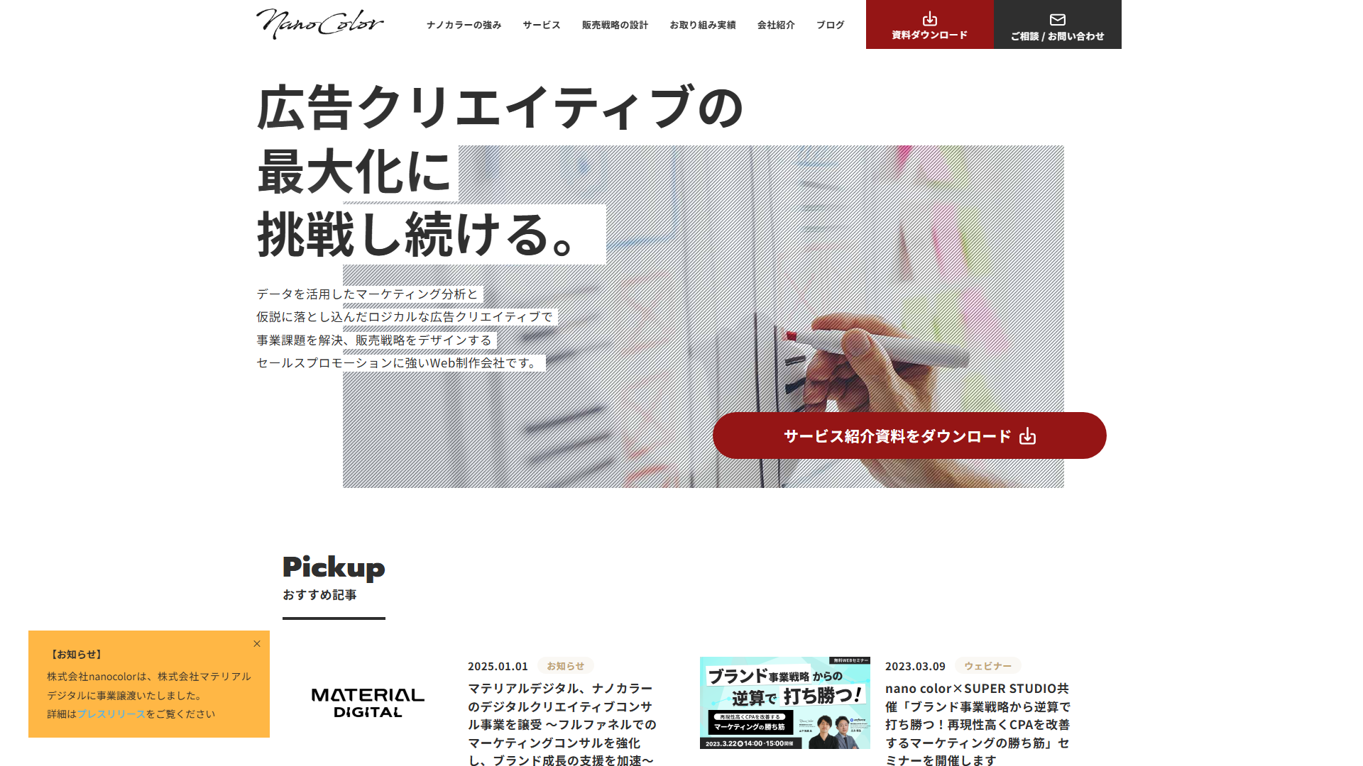 - 特徴: クリエーティブとマーケティングの両面から課題解決に取り組む制作会社。ECサイト制作やブランディングにも対応