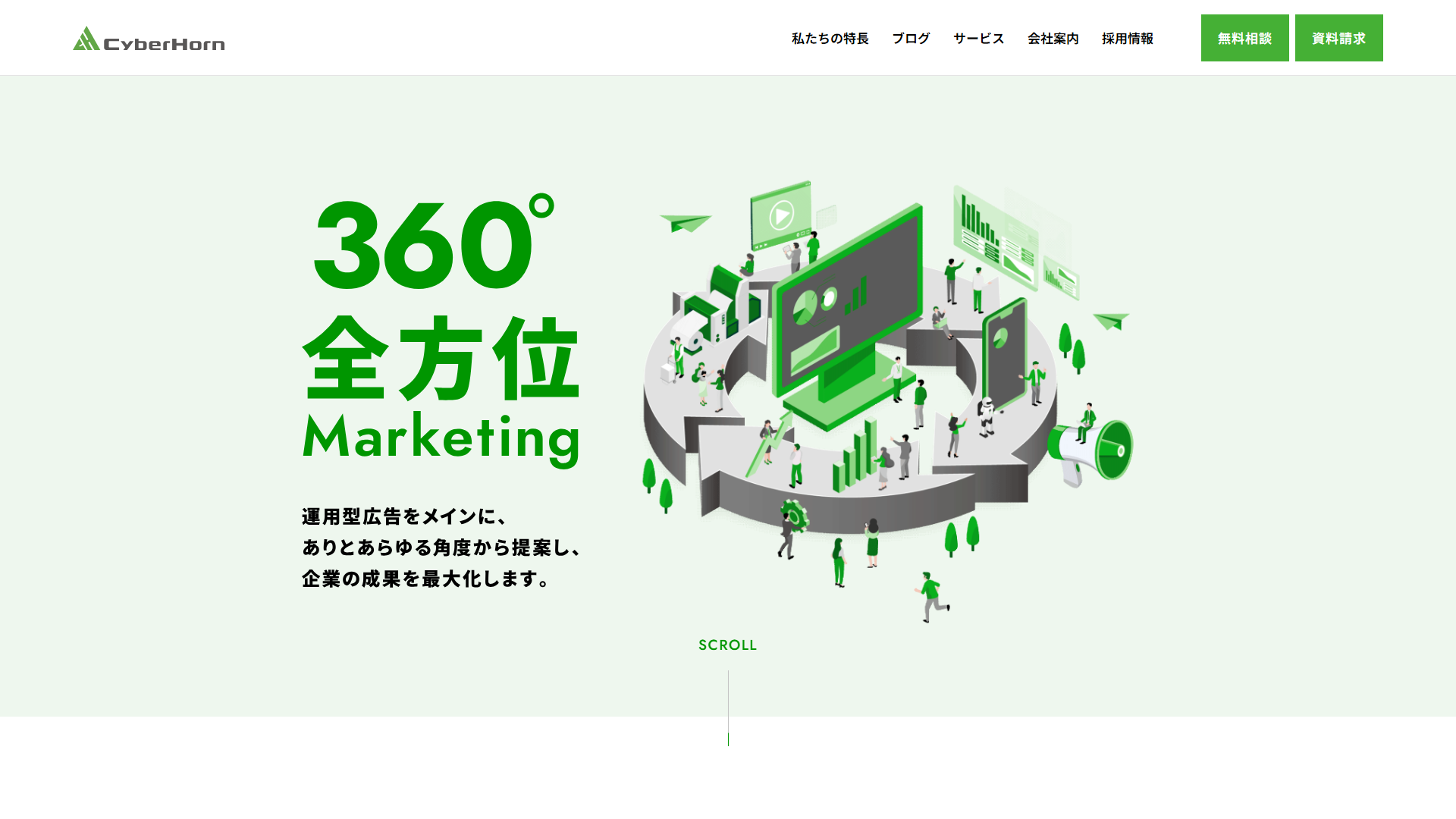 | 24 | ![]() | サイバーホルン | Web広告運用特化 | 要問い合わせ | LP・広告運用全般 | 公式HP |