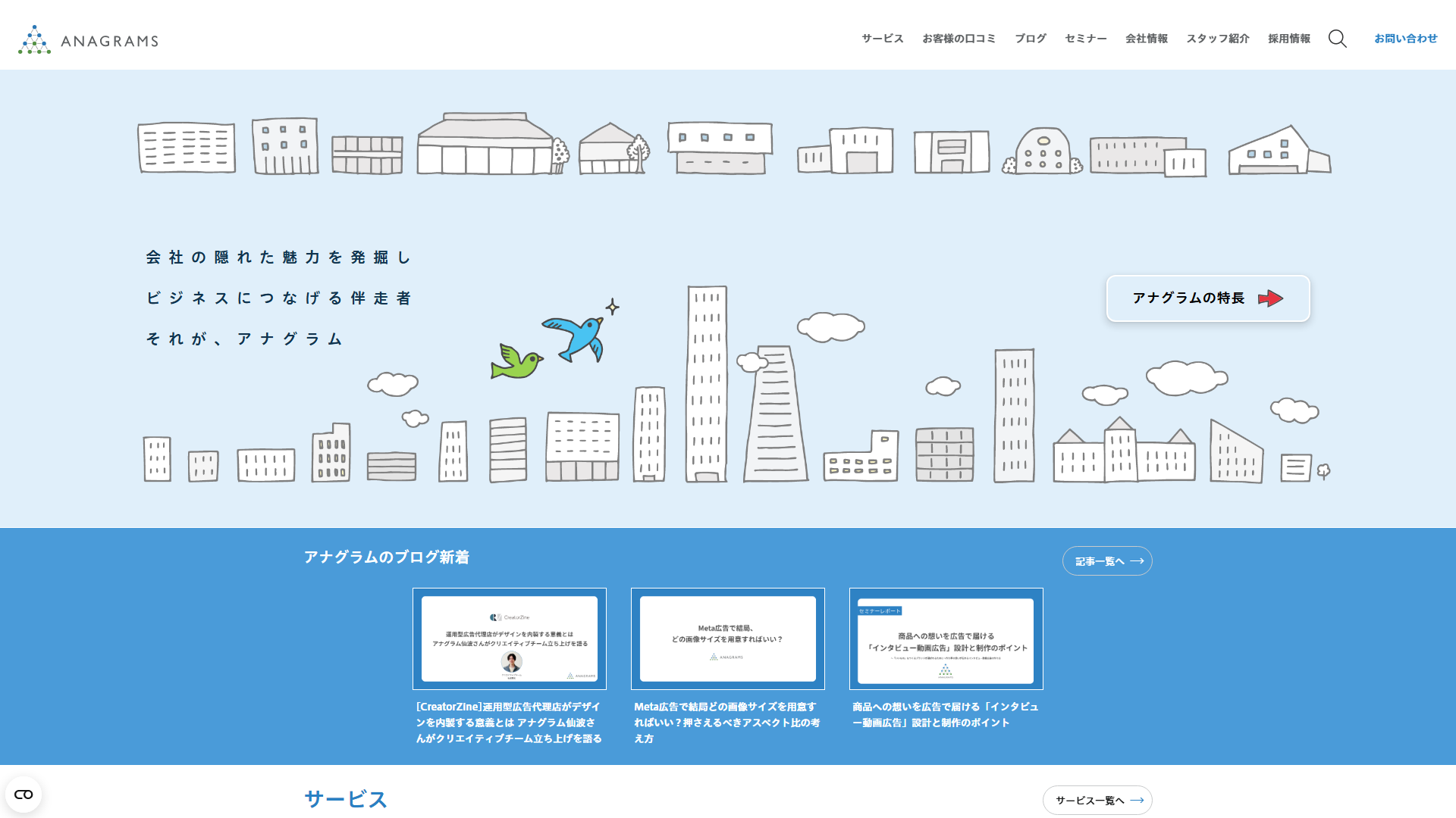 | 13 | ![]() | アナグラム | 少数精鋭・運用型広告特化 | 広告費の20% | リスティング・SNS・フィード | 公式HP |