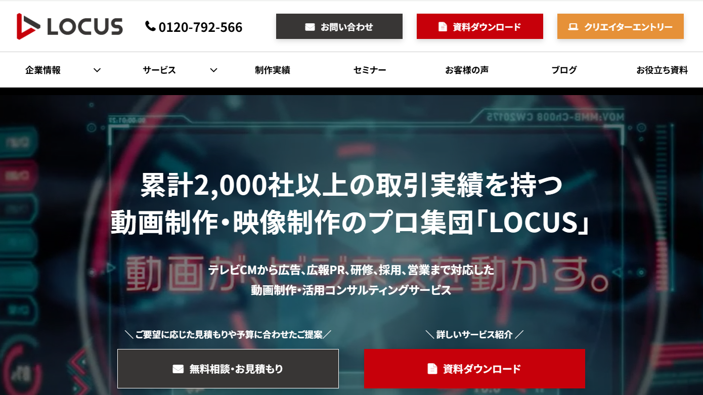 株式会社LOCUSは、取引実績2,000社以上・累計動画20,000本超の規模を持つ動画マーケティング専業会社です。