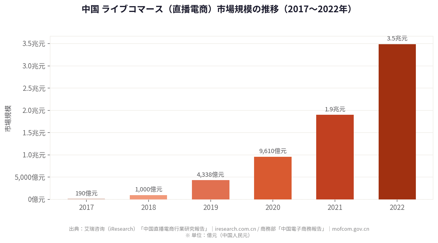 出典:艾瑞咨询(iResearch)「中国直播電商行業研究報告」 / 中国商務部「中国電子商務報告」 https://www.iresearch.com.cn/ http://www.mofcom.gov.cn/