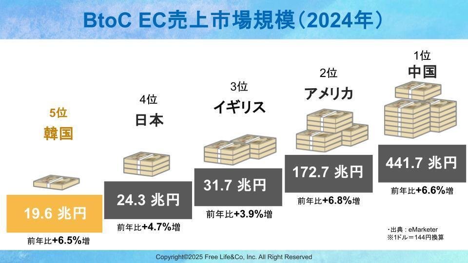 越境ECの観点で見ると、通販市場が世界2位国への到達力はかなり大きいと思います。